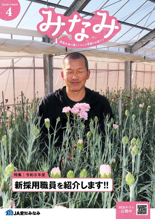 重要なお知らせ 【組合員の皆様へ】豊川用水渇水に伴う農業用水節水協力依頼の解除のお知らせについて システム更改に伴うATM等サービス一時休止について 節水強化に伴うJA-SS洗車機の利用中止について 【注意喚起】詐欺被害に遭わないようご注意を! JAバンク・JAネットバンクを装ったフィッシングメール、サイトにご注意ください 現金等重要物を預かる際の、受取書、領収書等の発行に関するお知らせ みなみインフォ記事一覧 カテゴリー一覧を見る 新着 みなみインフォ 2026年04月15日 JA-SS JAーSS洗車機利用再開について 2026年04月03日 お得な情報 恋活サポートLINE 友だち募集中 2026年04月02日 JAバンク ローン金利情報 2026年04月02日 JAバンク 選べる2つの農業資金 2026年04月02日 JAバンク 投資信託セット型定期貯金 2026年03月25日 JA共済 共済窓口土曜日営業時間変更のお知らせ 2026年03月12日 JAバンク システム更改に伴うATM等サービス一時休止について 2026年03月03日 JAバンク 特殊詐欺被害の未然防止に向けた65歳以上のお客さまの ATMご利用限度額の引き下げについて MAGAZINE今月の広報誌 4月号 広報誌一覧はこちら お得な情報 恋活サポートLINE 友だち募集中 2026年04月03日 JAバンク ローン金利情報 2026年04月02日 JAバンク 選べる2つの農業資金 2026年04月02日 JAバンク 投資信託セット型定期貯金 2026年04月02日 産直情報 4月の平日限定『日替わりランチ』メニュー♪ 2026年03月30日 産直情報 4月の産直イベント情報 2026年03月30日 畜産ニュース どうまい牛乳 発売19周年キャンペーン!! 2026年02月18日 JA-SS 伊良湖岬フルSS 営業時間変更のお知らせ 2025年08月04日 特産物一覧はこちら 【業者様】お問合せ 青果Fruits and vegetables 野菜と果物、みなみの大地で育ったおいしいをお届けします。 特産物紹介 部会紹介 こだわり農産物 安全・安心に関する情報 花きFlower 暮らしの中に花々を。みなみのきれいをお届けします。 品種紹介 部会紹介 畜産Livestock 安心・安全、こだわりの美味しさをお届けします。 あつみ牛 田原牛 常春ビーフ みかわポーク どうまい牛乳 暮らしを支える事業紹介 詳しくみる JAバンク 身近で便利、安心。貯金、融資などお金に関するご相談はお近くの支店へお気軽に。 JA共済 組合員・地域の皆さまの暮らしのパートナーでありたい。絆が、備えになるJA共済。 JA-SS お値打ち価格で確かな品質。あなたのまちのマイホームステーション JA葬祭 花が繋げてくれた「縁」。送る人の真心を生花に込めて 資産管理 住まいも安心「JAの賃貸」、不動産物件などの情報はこちらから。 農地活用 農地中間管理機構を活用して、農地に関する課題を解決しませんか?