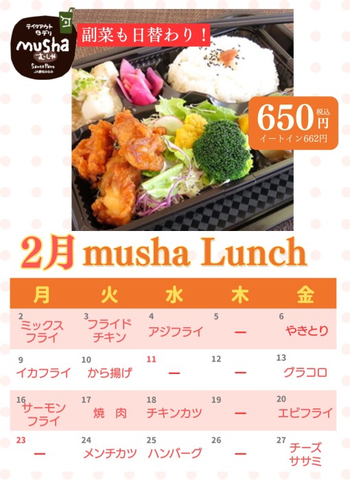 みなみinfo トップ みなみinfo 2月の平日限定『日替わりランチ』メニュー♪ 2026年01月31日 産直情報 2月の平日限定『日替わりランチ』メニュー♪ シェア Tweet 画像の拡大はこちらから 記事一覧はこちら